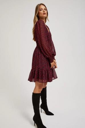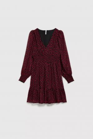 Černé šaty s nabíranými rukávy a výstřihem do V