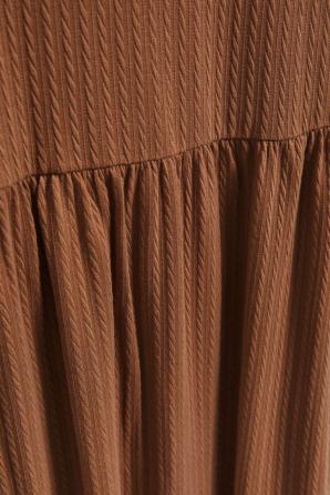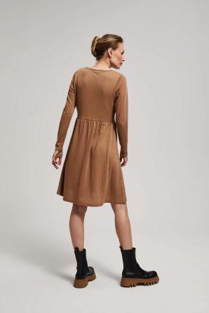 Šaty jsou perfektní volbou pro každou ženu. Model je vyroben z vysoce kvalitního polyesteru, který zajišťuje pohodlí při nošení a odolnost. Šaty mají navíc elastický pas, který zvýrazňuje pas. Díky rozšířenému střihu jsou šaty extrémně ženské a elegantní. Perfektní pro každodenní použití, do práce i pro různé příležitosti. Šaty mají kulatý výstřih, který krásně zvýrazní krk a dekolt a délka do půli stehen je velmi univerzální a hodí se k různým siluetám. Tento klasický model je perfektním doplňkem vašeho šatníku a hodí se jak k bytům, tak na jehlových podpatcích. Nenahraditelný kousek oblečení, který podtrhne vaši ženskost a styl.