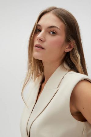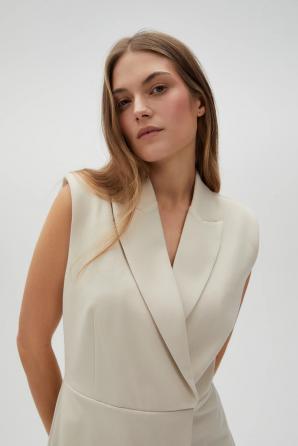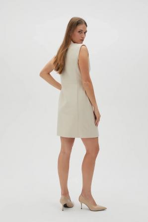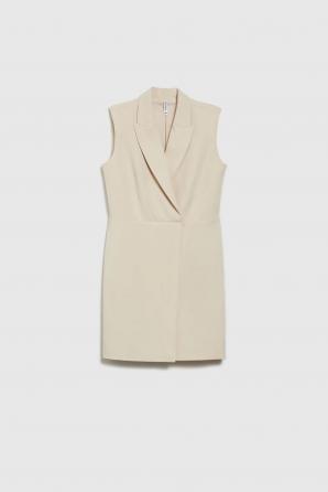 VRCHNÍ VRSTVA: 63% POLYESTER, 33% VISKÓZA, 4% ELASTAN. PODŠÍVKA: 100% POLYESTER. Šaty krémové barvy, bez vzoru, z hladkého materiálu. Model je vypasovaný, má zapínání na zip a elegantní límec s výstřihem do V. Extrémně klasické a univerzální, ideální pro zvláštní příležitost i do práce. Tyto šaty se budou hodit na mnoho příležitostí, formálních i neformálnějších. Skvěle se bude hodit k lodičkám na vysokém podpatku nebo balerínkám a vytvoří elegantní nebo ležérní vzhled.