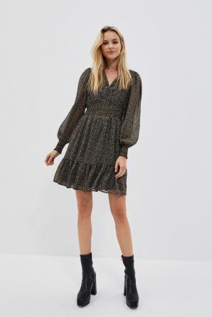Elegantní šaty s decentním zvířecím motivem. Vyrobeno v černé a béžové barvě.