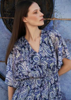 MODRÉ VZOROVANÉ ŠATY KE KOLENŮM