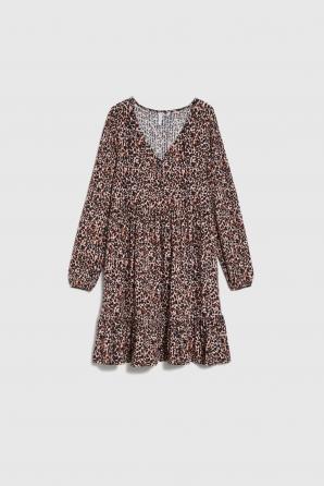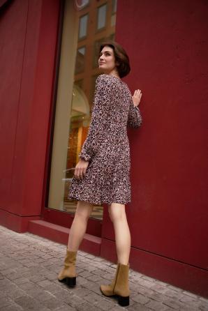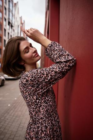 95% POLYESTER, 5% ELASTAN. Tyto dámské šaty s výrazným zvířecím potiskem zaujmou kombinací černé a růžové. Lichoběžníkový, přiléhavý střih krásně zdůrazňuje postavu a umožňuje volnost pohybu. Elegantní nabírání, decentní volánky a ozdobné manžety dodávají šatům nádech lehkosti a ženského šarmu. Úplet s polyesterem zajišťuje odolnost, měkkost a celodenní pohodlí. Ideální pro zvláštní příležitosti, každodenní nošení nebo do práce.
