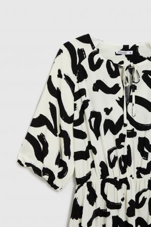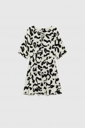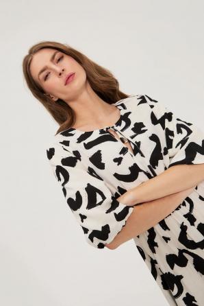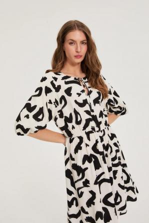 Viskózové šaty s potiskem v barvě bílá ecru