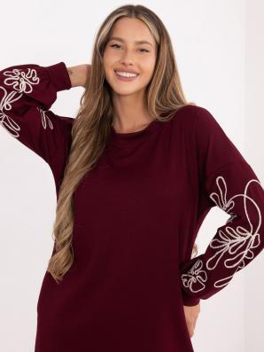 Vínové mikinové šaty s vyšívkou a širokými spadlými rukávy a s kapsami