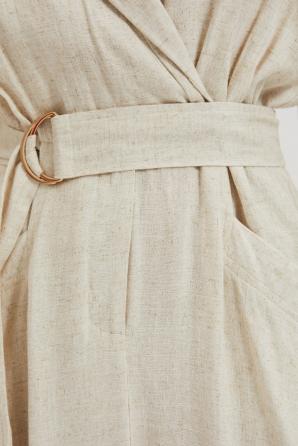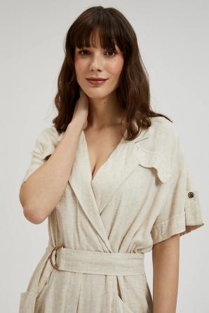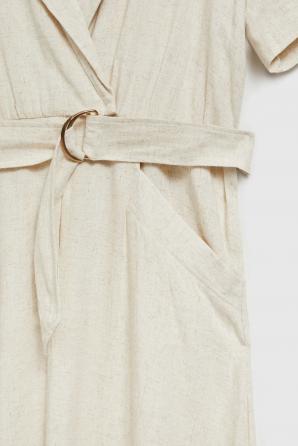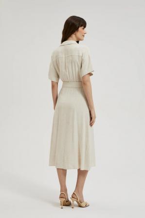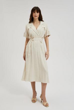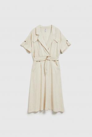 Lněné šaty s výstřihem do V béžové barvy