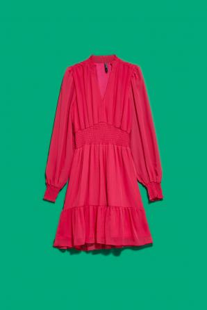 ŠATY S VOLÁNEM A NABÍRANÝMI RUKÁVY