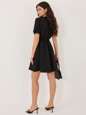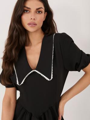 Černé rozšířené šaty s límečkem - UNIVERZÁLNÍ VELIKOST, s nadýchaným rukávem, délka mini