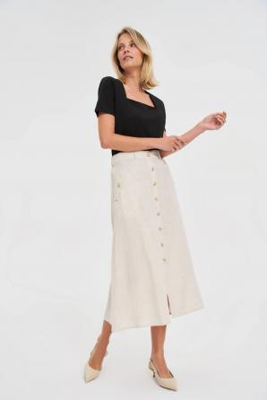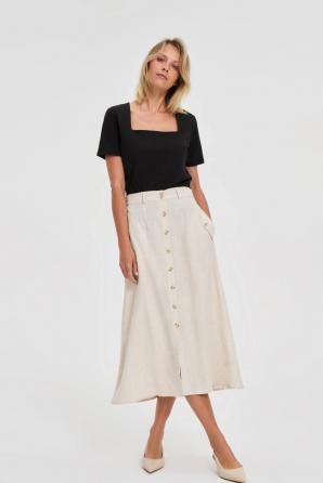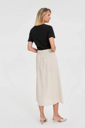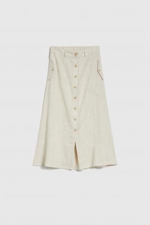 Béžová lněná midi sukně