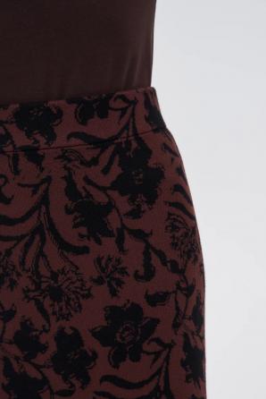 70% VISKÓZA 30% POLYESTER Tato hnědá viskózová pouzdrová sukně je perfektní volbou pro ty, kteří oceňují pohodlí a přirozený styl. Měkká tkanina jemně obepíná siluetu a zdůrazňuje ženské křivky, zatímco elastický pas zajišťuje celodenní pohodlí. Rostlinný vzor decentně evokuje přírodu a vnáší svěžest a lehkost do každodenního outfitu. Měkká tkanina vám umožní cítit se pohodlně bez ohledu na tempo dne. Tato sukně nad kolena je ideální do práce, na procházku po městě nebo na setkání s přáteli. Perfektně se hodí ke klasické košili, lehkému svetru nebo jednoduchému tričku. Lze ji zkombinovat se sakem pro elegantní nádech nebo s džínovou bundou pro ležérní a uvolněný vzhled. Tužkový střih zdůrazňuje ženskost a elastický pas zajišťuje pohodlí při každodenním nošení. Tento všestranný kousek inspiruje k různorodým módním outfitům pro každou příležitost.