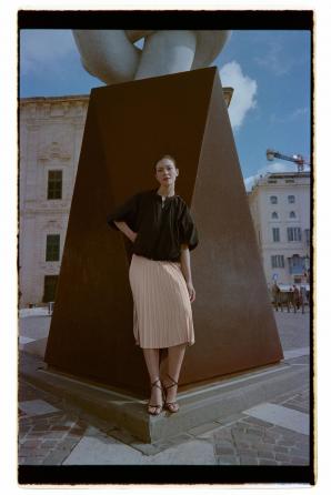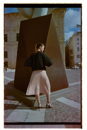 100% POLYESTER Tato skládaná sukně je ideální pro ty, kteří oceňují pohodlí a volnost pohybu. Jemná tkanina decentně splývá s postavou, zatímco elastický pas zdůrazňuje ženské křivky a zajišťuje celodenní pohodlí. Béžová barva dokonale doplňuje různé odstíny a vytváří tak všestranný základ pro různé styly. Lehká tkanina umožňuje sukni jemně splývat a neomezovat pohyb, takže je ideální jak do práce, tak pro každodenní aktivity. Tato sukně je skvělou volbou pro schůzku ve městě, procházku nebo rodinnou večeři. V kombinaci s klasickou košilí získává elegantní nádech, zatímco v kombinaci s volným tričkem a teniskami se hodí k ležérnímu vzhledu. Dobře se hodí k saku, svetru nebo motorkářské bundě a umožňuje tak vytvořit ženské a všestranné outfity. Skládaný design dodává sukni nádech lehkosti a praktický střih dělá ze sukně Moodo spolehlivý základ vašeho každodenního šatníku.