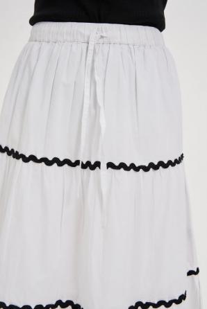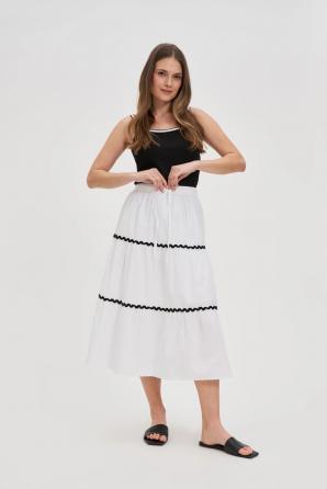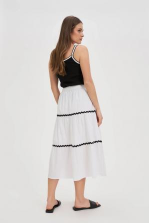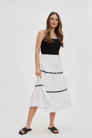 Modelka na obrázku: výška - 173 cm, rozměry 82/63/92, velikost v Moodo - horní část-XS, spodní část-S