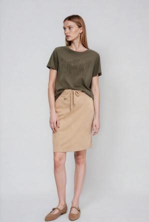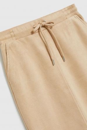 95% POLYESTER, 5% ELASTAN Tato béžová sukně je ztělesněním pohodlí a ženského stylu ve vašem každodenním šatníku. Módní střih po kolena decentně zdůrazní vaši postavu, zatímco elastický pas zajišťuje volnost pohybu po celý den. Hladká a měkká látka vás zahalí do lehkého a pohodlného pocitu, díky kterému se budete cítit pohodlně a přirozeně v každé situaci. Neutrální odstín béžové se dokonale hodí k vašim oblíbeným doplňkům a vytvoří základ pro mnoho inspirativních outfitů. Tato sukně je ideální do kanceláře, na procházky po městě nebo na víkendové pobyty s přáteli. V kombinaci s klasickou košilí a sakem získá elegantní nádech a v kombinaci s jednoduchým tričkem nebo jemným svetrem se skvěle hodí pro každodenní nošení.