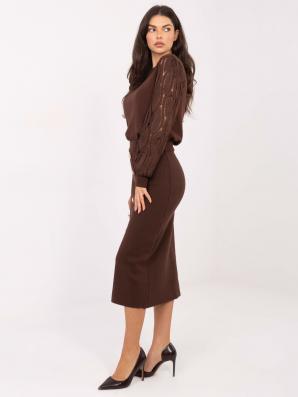 Hnědá přiléhavá úpletová sukně s ozdobnými knoflíky
