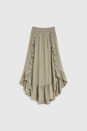 Olivová volánová sukně