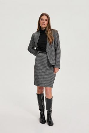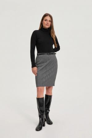 72,8 % POLYESTER 15,2 % METALICKÁ NIT 10 % VISKÓZA 2 % ELASTAN Tato šedá sukně s módním melanžovým vzorem zaujme svým minimalistickým designem a nadčasovou elegancí. Rovný střih opticky zeštíhluje siluetu, zatímco délka po kolena decentně zvýrazňuje nohy. Ozdobný pásek dodává sukni sofistikovaný nádech a jedinečný styl. Praktický zip zajišťuje snadné oblékání a perfektní střih. Materiál je vyroben z měkkého, nemačkavého polyesteru, který zajišťuje celodenní pohodlí. Ideální volba pro obchodní schůzky, práci nebo elegantní příležitosti. Perfektně se hodí ke klasické košili, přiléhavému roláku nebo stylovému saku. Perfektně se hodí k jehlovým podpatkům i k ležérní obuvi a vytvoří tak stylový a ženský vzhled pro každou příležitost. Šedá melanžová sukně s ozdobným páskem je nezbytností v šatníku každé ženy.