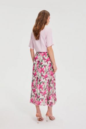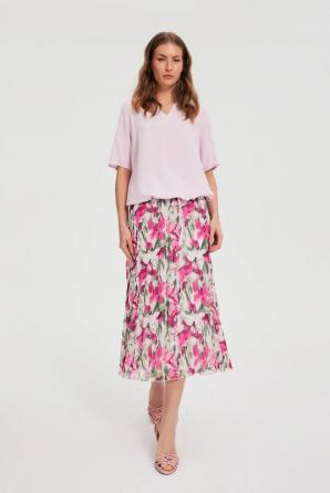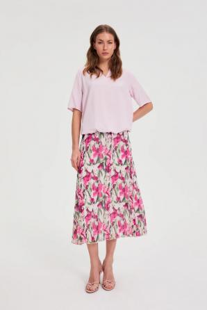 100% POLYESTER Tato krémově zbarvená plisovaná sukně kombinuje ženský styl s každodenním pohodlím. Lehká šifonová tkanina s jemným květinovým vzorem dodává každému outfitu svěžest a volnost pohybu. Střih s praktickým zipem a elastickou podšívkou zajišťuje pohodlí i během těch nejaktivnějších dnů. Plisé zdůrazňují postavu a délka do poloviny lýtek zaručuje všestranné nošení bez ohledu na příležitost. Tato sukně je ideální do práce, na schůzky s přáteli nebo na procházky po městě. Jednoduše ji zkombinujte s jednoduchým tričkem, lehkým svetrem nebo klasickým tričkem pro ležérní nebo elegantnější vzhled. Perfektně se hodí k džínové bundě, saku a kotníkovým botám nebo teniskám a vytvoří tak look pro každé roční období. Plisovaná sukně je módní volbou pro ženy, které si ve svém každodenním šatníku cení pohodlí, ženského střihu a všestrannosti.