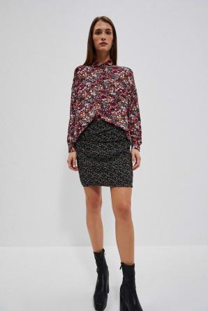 Dámská sukně hnědé barvy s jemným zvířecím potiskem celoplošně světlejší barvy. Má podšívku. Tužkový střih, perfektně sedí na postavě. Dalším zpestřením je sbírání materiálu ozdobným kruhem. Šifon, vyrobený z lehkého a vzdušného materiálu. Na zip. Střední stav. Délka do půli stehen. Skvělá nabídka do práce nebo na párty.