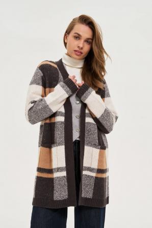 Béžový kostkovaný kardigan