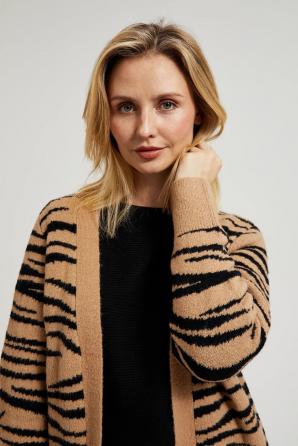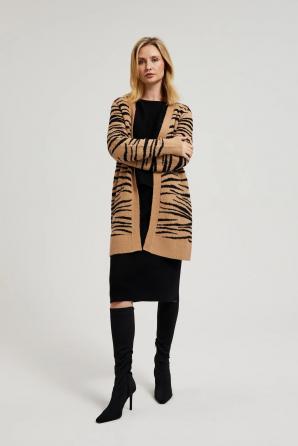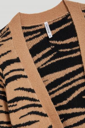 Béžový kardigan s dlouhým rukávem a zvířecím vzorem
