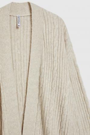 50% RECYKLOVANÝ POLYESTER, 25% POLYESTER, 25% AKRYL Béžový svetr je perfektní volbou pro chladnější dny. Cardigan, který lze odepnout, je delší a volnější, díky čemuž skvěle padne na každou postavu. Dlouhé rukávy a výstřih do V dodávají na eleganci a dělají svetr univerzálním a vhodným pro mnoho příležitostí. Tento svetr je ideální jak pro každodenní styling, tak pro setkání s přáteli nebo rodinou. Dá se nosit ke kalhotám, sukni nebo šatům. Díky svému klasickému střihu se skvěle hodí k různým prvkům šatníku a dodává stylingu jedinečný charakter.