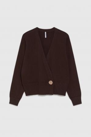 Hnědý kardigan s ozdobným knoflíkem