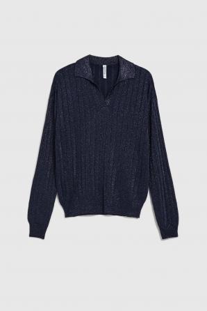 Dámský tmavě modrý svetr je perfektní volbou pro každou ženu, která si cení elegance a pohodlí. Vyrobeno z vysoce kvalitní viskózy, zaručuje měkkost a potěšení z nošení. Metalická nit jí dodává jemný lesk a klasický střih s dlouhými rukávy a výstřihem do V z ní dělá extrémně univerzální model. Bez vzoru a hladké na dotek, ideální pro každodenní použití i formálnější příležitosti. Tento svetr se bude hodit na večerní setkání s přáteli, rande nebo i do práce. Skvěle se hodí jak k elegantním kalhotám, tak k džínám.
