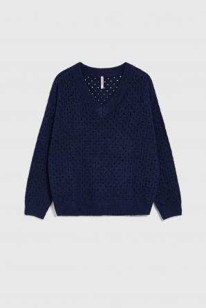 Prolamovaný svetr s metalickou nití, tmavě modrá