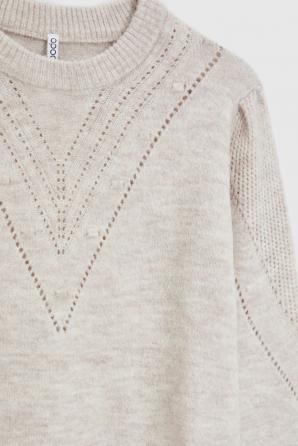 68 % AKRYL, 24 % POLYESTER, 5 % ELASTAN, 3 % VLNA. Tento volný dámský svetr v béžových odstínech zaujme svou nadčasovou elegancí a všestranným charakterem. Hladký nevzorovaný povrch doplněný dirkovým vzorem zdůrazňuje minimalistický styl, zatímco nabrané dlouhé rukávy dodávají svetru lehký a módní nádech. Kulatý výstřih zajišťuje pohodlí, zatímco měkký akryl zaručuje příjemný pocit na pokožce a snadnou údržbu. Ideální volba pro každodenní výlety, schůzky s přáteli nebo do práce, kde je klíčové pohodlí a volnost pohybu. Dokonale se hodí ke klasickým džínům, elegantním kalhotám nebo midi sukni a vytváří tak módní outfity pro každou příležitost.
