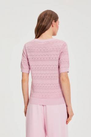 Prolamovaný svetr s krátkým rukávem, růžový