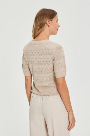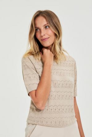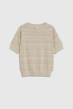 Prolamovaný svetr s krátkým rukávem, béžový