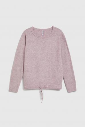 svetr s kulatým výstřihem a zavazováním v pase