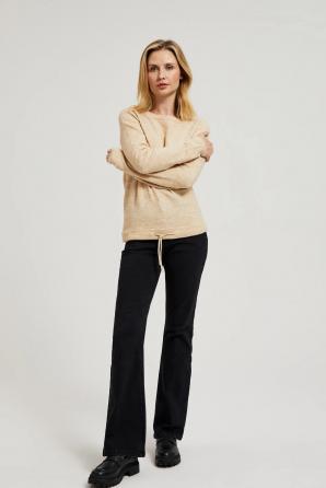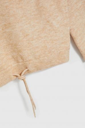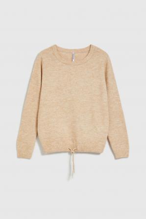 svetr s kulatým výstřihem a zavazováním v pase