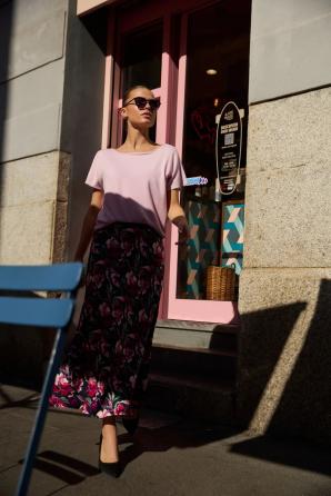 70% VISKÓZA 30% POLYAMID Tento jemný růžový svetr je vyroben z jemné viskózy, která je lehká a jemně obepíná siluetu. Krátké rukávy a ženský kulatý výstřih dodávají svěžest každodennímu vzhledu, zatímco všestranný design zdůrazňuje volnost pohybu a přirozený styl. Tento svetr je ideální pro dynamický den, kdy je pohodlí a nadčasová elegance klíčová, ať už je jakákoli příležitost. Je ideální do práce v kombinaci s látkovými kalhotami nebo pouzdrovou sukní, ale stejně dobře vypadá i ležérně s džínami nebo pod lehkým sakem.