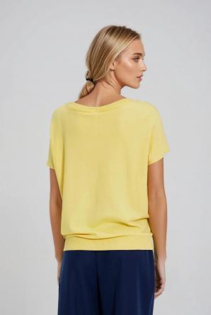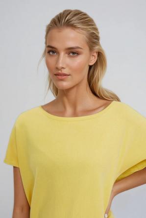 70% VISKÓZA 30% POLYAMID Tento žlutý viskózový svetr s krátkými rukávy a kulatým výstřihem je ideální pro ženy, které si cení pohodlí a decentního stylu. Lehká a měkká tkanina příjemně obepíná a zajišťuje celodenní pohodlí, zatímco ženský střih vytváří svěží a přirozenou siluetu. Jemný materiál dobře splývá a umožňuje neomezený pohyb a pocit pohodlí v každé situaci. Tento svetr je ideální na den v práci, odpolední procházku nebo setkání s přáteli. Všestranný design umožňuje kombinovat jej s klasickými kalhotami, oblíbenou sukní nebo džínami. V kombinaci se sakem vytváří stylový, ležérní vzhled a s lehkými doplňky zdůrazní každodenní, ženský charakter vašeho outfitu.