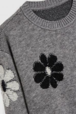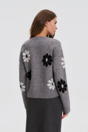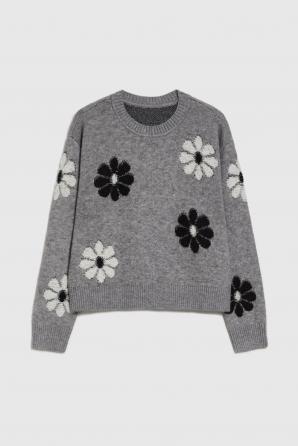 Šedý květovaný svetr