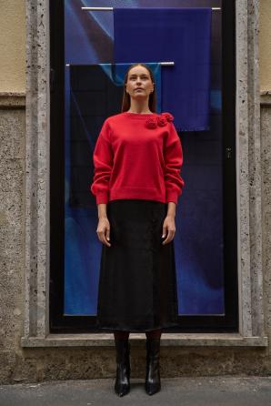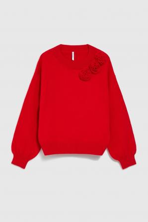 Červený svetr s aplikací