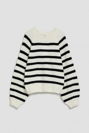 76 % AKRYL, 21 % POLYAMID, 3 % ELASTAN Jedinečný krémový svetr je absolutní nutností ve vašem šatníku. Vyrobeno z vysoce kvalitního akrylu, zaručuje odolnost a pohodlí při nošení. Jeho klasický střih a elegantní pruhy mu dodávají jedinečný charakter. Svetr má raglánové rukávy, které zdůrazňují jemnost a ženskost postavy. Kulatý výstřih dokonale zvýrazňuje krk a díky nedostatku dalších ozdob se svetr hodí do mnoha různých stylů.