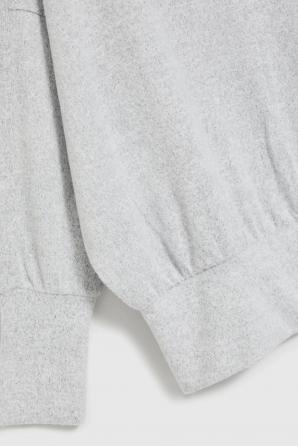 Šedý melanžový svetr s netopýřími rukávy a lodičkovým výstřihem je perfektním doplňkem vašeho šatníku. Vyrobeno z vysoce kvalitní viskózy, která zajišťuje pohodlí při nošení a perfektní padnutí. Dlouhé rukávy a volný střih ji dělají nejen stylovou, ale také velmi pohodlnou. Svetr bude perfektní volbou na každý den, do práce nebo na schůzku s přáteli. Můžete ji kombinovat s džínami a teniskami, stejně jako se sukní a podpatky - vždy budete vypadat módně a stylově. Bez ohledu na příležitost vám tento svetr jistě dodá kouzlo a budete se cítit výjimečně.