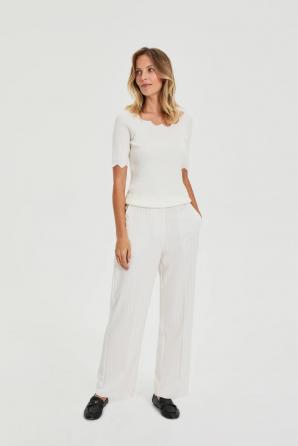70% VISKÓZA 30% POLYAMID Tento svetr s krátkým rukávem kombinuje ženský styl s každodenním pohodlím. Přiléhavý střih decentně zdůrazňuje siluetu, zatímco žebrovaná struktura dodává lehký a moderní vzhled. Měkká a pohodlná tkanina činí tento kousek ideálním pro celodenní nošení – jak do kanceláře, tak i při městských aktivitách. Všestranná barva se snadno hodí k dalším kouskům šatníku a nabízí mnoho stylistických možností. Ideální volba do práce, na procházku nebo na setkání s přáteli. Tento svetr s krátkým rukávem vypadá skvěle s plisovanými kalhotami, vašimi oblíbenými džínami nebo midi sukní. V kombinaci se sakem získává elegantnější nádech a nošený samostatně vytváří uvolněný a ležérní vzhled.