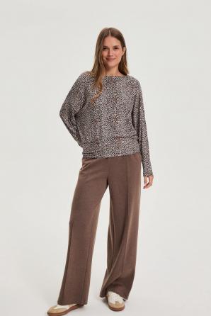 95% POLYESTER, 5% ELASTAN Tento dámský svetr v hnědých odstínech zaujme svým módním zvířecím potiskem, který dodává vzhledu jedinečný charakter. Netopýří střih s volným střihem a spuštěnými rameny zajišťuje pohodlí a volnost pohybu. Dlouhé rukávy a kulatý výstřih zdůrazňují všestrannost modelu, díky čemuž je ideální pro chladnější dny. Je ideální volbou pro každodenní nošení, setkání s přáteli nebo neformální příležitosti. Perfektně se hodí k džínům, midi sukním a cigaretovým kalhotám. Zvířecí potisk dodává modelu nádech originality a vytváří stylový vzhled pro každé roční období.