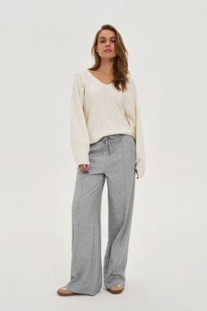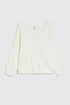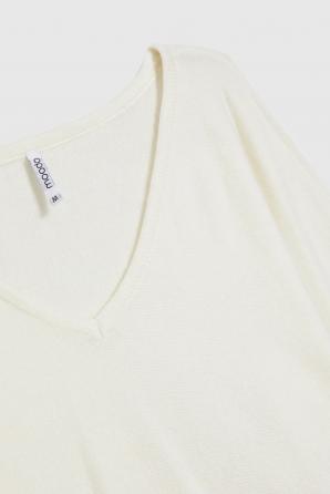 50% VISKÓZA, 25% POLYESTER, 25% POLYAMID Tento krémově ecru dámský svetr zaujme svým minimalistickým, hladkým povrchem a módním střihem „netopýří křídlo“. Jemný výstřih do V zdůrazňuje krk, zatímco dlouhé rukávy zajišťují pohodlí i v chladnějších dnech. Měkká tkanina s vysokým obsahem viskózy zaručuje pohodlné nošení a lehký pocit, ideální pro každé roční období. Jednoduchý design dokonale odráží nadčasové trendy a umožňuje snadné sladění s různými styly. Tento svetr je ideální pro každodenní práci, schůzky s přáteli nebo rodinná setkání. Krásně se hodí ke klasickým džínům, elegantním látkovým kalhotám nebo midi sukni. Vypadá skvěle jak s kotníkovými botami, tak s teniskami, takže je všestrannou volbou pro každou příležitost.