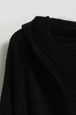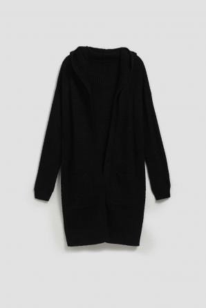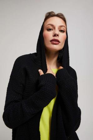 Černý dámský svetr je perfektní volbou pro každou ženu, která si cení stylu, pohodlí a funkčnosti. Svetr je vyroben z kvalitního akrylu, díky kterému je měkký a příjemný na dotek. Jeho strukturní vzor mu dodává jedinečný charakter a působí mimořádně atraktivním dojmem. Kardigan je otevřený s dlouhými rukávy. Navíc má kapuci, která poskytuje dodatečnou ochranu proti větru a chladu. Praktické kapsy na přední straně svetru jsou jako stvořené pro uložení drobností. Svetr se skvěle hodí do chladných dnů, dodá nejen teplo, ale i módní vzhled.