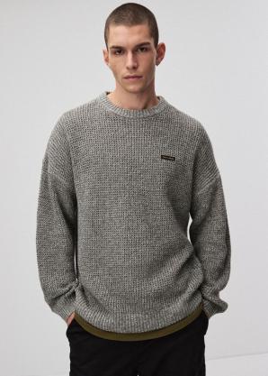 Klasický bavlněný svetr - minimalistický design, vhodný k mnoha stylům, - volný střih, - klasický kulatý výstřih, - nášivka na hrudi, - žebrovaný lem na manžetách a ve spodním dílu svetru.