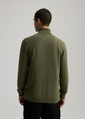 Vyrobeno z vysoce kvalitního úpletu (70 % bavlna, 30 % polyamid), má rovný střih, přiléhavé dlouhé rukávy a elastické manžety. Tento svetr se hodí samostatně nebo pod bundou pro muže, kteří hledají módní a zároveň praktické řešení.