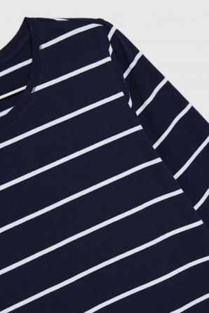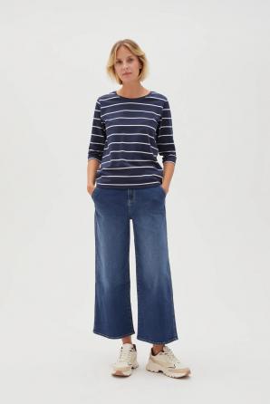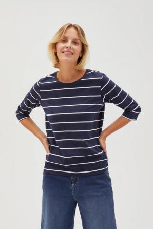 Pruhovaná halenka jednoduchého střihu, tmavě modrá