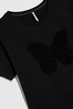 Bavlněné tričko s aplikací v černé barvě