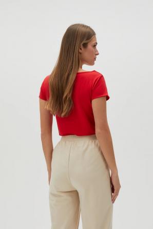 95% BAVLNA, 5% ELASTAN Červená halenka je perfektní volbou pro každou ženu, která si cení pohodlí a stylu. Vyrobeno z vysoce kvalitní bavlny, hladké a bez vzoru, poskytuje bezkonkurenční pohodlí při nošení. Krátké rukávy a lodičkový výstřih dodávají halence eleganci a nadčasový šarm. Tričko je ideální pro mnoho různých příležitostí - jak pro každodenní, tak pro formálnější příležitosti. Můžete jej spárovat s džínami a sportovní obuví, stejně jako sukní a podpatky, a vytvořit tak různé styly pro každé roční období. Jedná se o extrémně univerzální kus oblečení, který stojí za to mít ve svém šatníku.