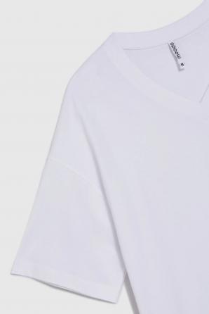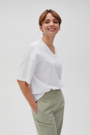 Bílá halenka je perfektní volbou pro každou ženu, která si cení pohodlí a stylu. Vyrobeno z měkké bavlny, zajišťuje pohodlí při nošení. Díky krátkým rukávům a oversize střihu je halenka nejen módní, ale také velmi pohodlná. Výstřih do V dodává eleganci a hladká textura je vhodná pro mnoho různých stylů. Halenka je vhodná pro mnoho příležitostí - jak na každý den, tak na setkání s přáteli nebo do města. Skvěle se hodí k džínům, sukním, ale i elegantním kalhotám či sukním. Díky svému univerzálnímu střihu a klasické bílé barvě je nenahraditelným prvkem dámského šatníku.