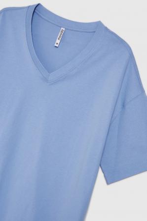 Volné modré tričko s výstřihem do V