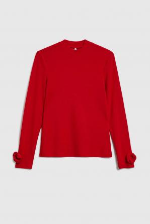 Červená halenka s aplikací na rukávech